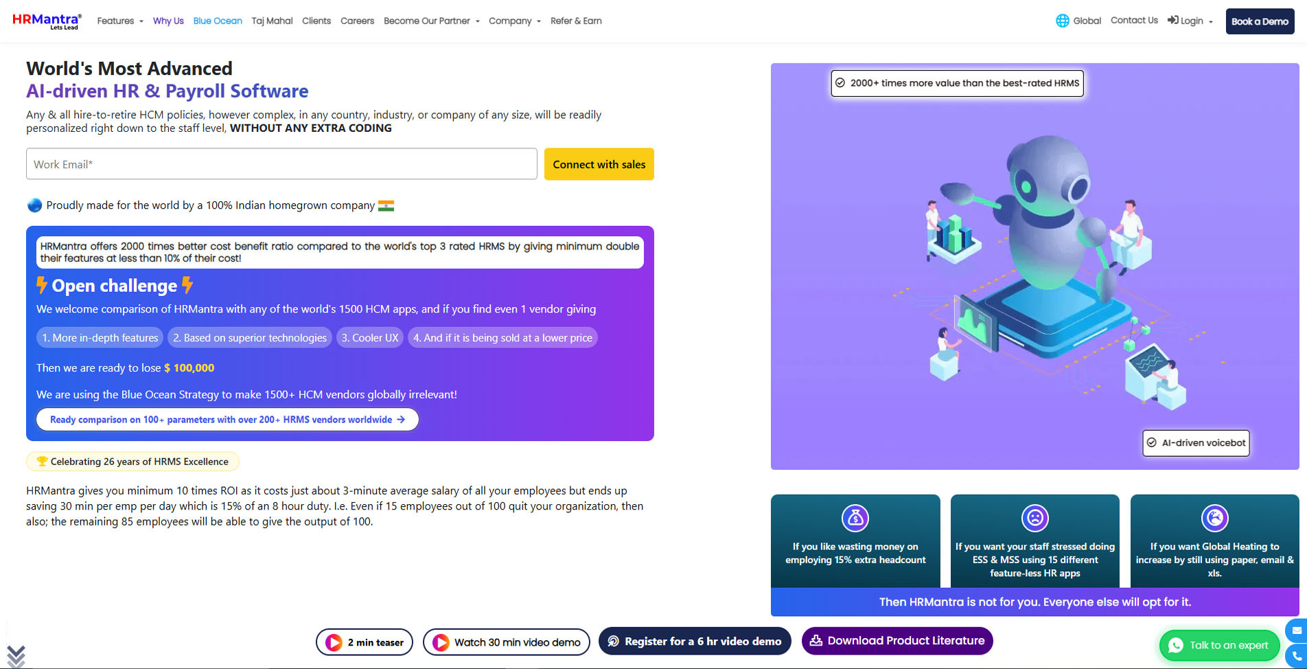 HRMantra is a comprehensive HR software solution offering a wide range of features, including payroll, recruitment, performance management, and compliance.
