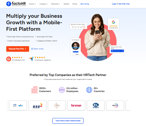 Overview: factoHR is a cloud-based HRMS with a strong PMS module, designed for Indian SMBs and enterprises, known for its integrated payroll and compliance features.